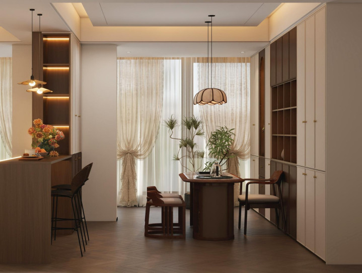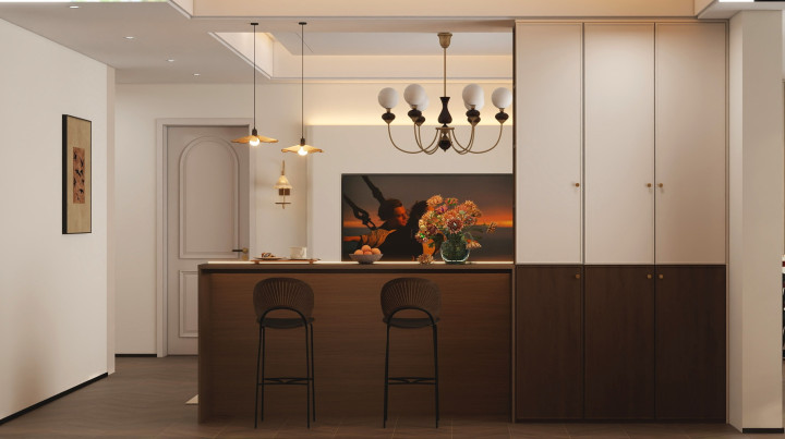 添盈聚富 胡桃木中古风, 拿捏空间的氛围感