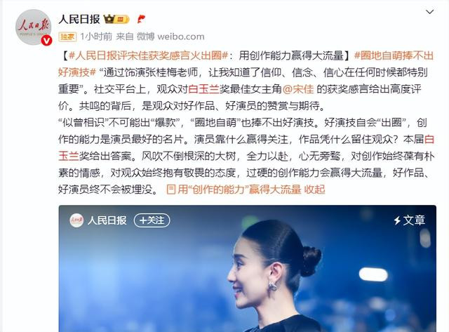【1】环球网2025-07-03《人民日报评宋佳获奖感言火出圈:用“创作的能力”赢得大流量》
