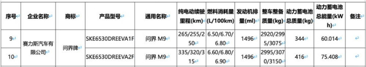 新款问界M9申报图