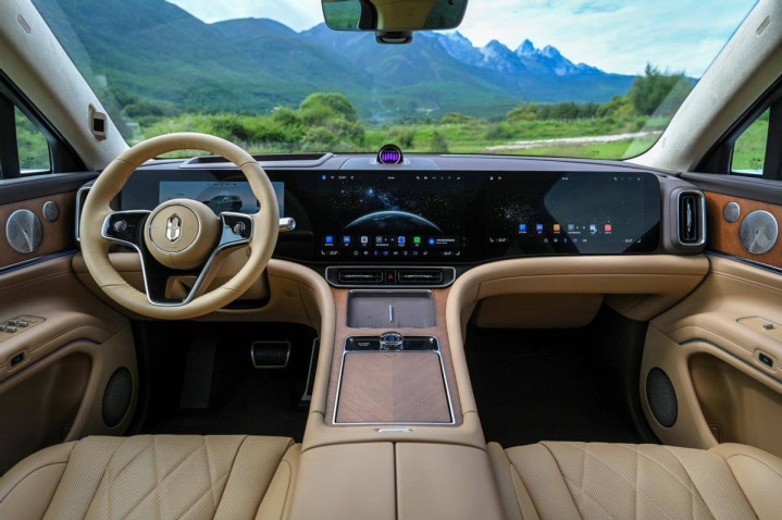 外形上,新车将贯穿式灯组升级为一体式设计,前包围中网采用网状镀铬装饰,豪华感进一步增强。值得注意的是,格栅中央增加了传感器组件,暗示其智驾硬件或进一步优化。此外,尊界S800同款的“星光门把手”以及第三排车窗新增的摄像头,都让新车的科技与豪华细节更加丰满。